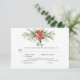 Elegante y clásico RSVP de boda de Navidad con una poinsettia roja con guirnalda de delicados pinos y ramitas. La parte trasera de la tarjeta es de color verde perenne. Personalice con su propia información. Agregue sus opciones de comida o elimínelas si lo desea. *** NOTA *** Si necesita ayuda con esta invitación o tiene solicitudes personalizadas con las que necesita mi ayuda, no coloque este artículo en su carrito. En su lugar, envíeme su solicitud por correo electrónico a shutterbug600@yahoo.com. Todo el envío e impresión es manejado por Zazzle y las preguntas relacionadas con su pedido deben dirigirse al soporte de Zazzle: https://www.zazzle.com/about/ask. No tengo acceso a su cuenta y no puedo hacer cambios una vez que haya realizado su pedido. Además, el CHAT no está en vivo, pero normalmente respondo en un plazo de 24 horas