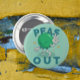 Difunde buenas vibras dondequiera que vayas con este botón de Peas Out. Con una feliz arveja verde haciendo una señal de paz, este diseño divertido transmite energía positiva con un toque de humor lleno de juegos de palabras.