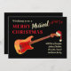 Traiga un poco de alegría festiva de música de guitarra a la temporada de Navidad con esta divertida tarjeta de Navidad moderna y musical. Una guitarra eléctrica divertida con llamas dibujadas a mano que lleva un sombrero de Santa con notas musicales y tipografía, todo fácil de personalizar con la plantilla. Ideal para familias que aman la música para enviar saludos de temporada y para guitarristas, maestros de música y músicos. Arte original de Catherine Sweetman