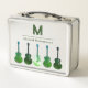 Guay monograma personalizado inicial y nombre con cinco divertidos ilustraciones de guitarra acústica de arte pop verde en crema, verde y verde oscuro con tipografía rústica moderna. Ideal para los amantes de la música, sobre todo para los guitarristas y los amantes de la música. Pintura original de la artista Catherine Sweetman