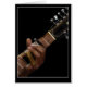 Imagen que muestra una mano con una diapositiva de bronce en el cuello de una guitarra.