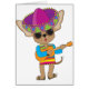 Una chihuahua feliz con golpear ligeramente del pie y la cola que menea, está tocando la guitarra mientras que en traje de la demostración, terminan con un sombrero mexicano grande.