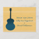 Perfecto para el anuncio de un boda de música rústica es esta Guitarra del País única Guardar la Postales de Fecha. Este diseño presenta una guitarra a rayas en azul real y un fondo de madera impreso. Fácil de personalizar, simplemente agregue los detalles de su boda. Haga clic en "Personalizar" para encontrar más opciones de personalización.