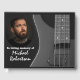 Una bonita guitarra eléctrica está sobre un fondo negro, perfecto para un guitarrista. Una cita de Irvin Berling está incluida en la parte de atrás: "La canción ha terminado, pero la melodía persiste..."
