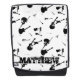 Patrón repetitivo con ilustraciones negros de guitarras sobre fondo blanco con nombre (negro + color claro para crear sombra de gota) en la mochila de personalizable. Puede cambiar fácilmente el tamaño y la posición del diseño y cambiar el texto (fuente, color, tamaño y posición) haciendo clic en el botón personalizar. Disponible con diseño negro sobre fondo blanco, verde y amarillo. Calzado, corbata, estuche de Iphone...
