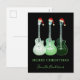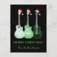Tarjeta de felicitaciones navideñas con guitarras eléctricas Green Pop Art. Una divertida postal de arte pop para amantes de la música con un toque navideño ideal para guitarristas, especialmente chicos adolescentes. Puedes cambiar el saludo usando las plantillas para personalizar esta tarjeta de felicitaciones navideñas de guitarras. Dibujos de arte pop verde de tres guitarras en verde etéreo translúcido con divertidos sombreros de Santa creados por la artista Catherine Sweetman