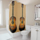 Guitars acústicos diseñan cortina de ducha en un color de fondo de su elección. ¡Una idea divertida para los aficionados a la guitarra en su lista de compras de vacaciones!