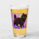 ¡Tumbler de vidrio con un gatito negro Gustav Klimt! Esta belleza de ojos anchos posa en un campo verde de flores moradas. Un regalo para los amantes del gato y del arte austriaco.