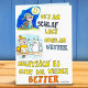 Tarjeta de felicitación alemana "Ponte bien pronto": el texto se traduce aproximadamente como "Ya sea por dormir o por el tiempo, lo principal es que te sentirás mejor".