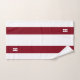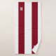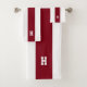 Monograma H sobre el juego de toallas de rayas blancas y crimson.
