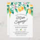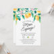 La invitación a la boda de limón color bonito con limones de color agua y vegetación preciosas. Personaliza con tus detalles especiales.