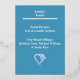 Este es un anuncio de Relieve metalizado sobre el nacimiento azul para un niño. Tiene una foto del corazón del Relieve metalizado y del bebé y su información de nacimiento por un lado, y la información de la familia del bebé por el otro lado.