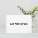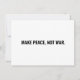 Hacer la paz no la guerra texto en blanco y negro minimalista simple negrita negrita tarjeta de saludo de protesta contra la guerra. También puede ser una gran tarjeta de disculpas/perdón. Personalizable completamente el texto negro sobre fondo blanco.