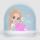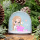 Cute bebé hadas elfo sosteniendo una flor de margarita y el texto Globe de la nieve. El texto se puede personalizar. Ideal para navidades, cumpleaños, fiesta, favor de la ducha para bebés y más.