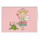 Una hada cabelluda rubia de la rana que lleva un vestido verde y rosado se sienta en el toadstool punteado polca que mira a su príncipe futuro, la rana verde, en las camisetas de la rana, las bolsas de asas, las tarjetas, los pegatinas, los gorras, los imanes, los llaveros, y más de hadas.