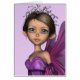 Representación digital en 3D de un lindo hada con vestido púrpura con fondo rosa