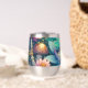 Botella personalizada de agua de hadas. Pequeño hada adorable que duerme sobre una flor de loto en una almohadilla de lirio con flores y fondo de setas. Ilustracion de estilo cuento de hadas.