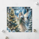 Tarjeta de Navidades personalizada. Ilustracion de un hada o ángel decorando un árbol de Navidad en un bosque encantado.