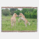Dos lindos zorros de Haflinger se divierten, se crían y se retocan en una pradera. La raza de castaño rubio, también llamada hafias o avelignese, fue fotografiada por Katho Menden. Esta manta tejida es un regalo encantador para los caballos. http://www.zazzle.com/kathom_photo