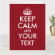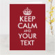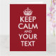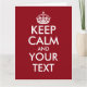 Haga que su propio de gran tamaño grande guarda tarjetas de felicitación tranquilas. Divertido guarde la calma y su tarjeta de felicitación del texto para los hombres, las mujeres y los niños. Lema lindo de la plantilla de la tipografía del vintage con la corona. Cita de Personalizable y color de fondo del personalizado. rojo brillante del IE. Cree su propia diversión guardan calma y continúan la parodia. Tarjetas muy grandes para él y ella, mamá, papá, marido, esposa, tío, tía, hijo, hija, padre, madre, abuelo, abuela, hermano, hermana, amigos, meme de moda del keepcalm de la familia etc. Tamaño del XL de la extra grande. Entonces un normal más grande. ¡Es enorme! La diversión para el cumpleaños, día de fiesta del navidad, agradece el etc. yous.