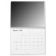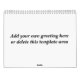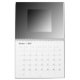 Cree su propio calendario personalizado cargando sus propias fotos o arte. Para la cubierta así como el área de la foto de cada mes, substituye simplemente la plantilla gris por su propia foto o ilustraciones. Observe por favor que hay también sitio para un mensaje de encargo en la parte de atrás del calendario. ** Personalice o suprima esa área antes de compra **
