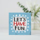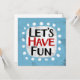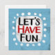 "Let's Have Fun" es un lindo diseño de texto en azul claro con texto en negro y rojo, junto con una forma de acento blanco y puntos caprichosos de textura blanca que lo rodean.