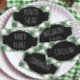 Saca las herramientas para asar y prepárate para impresionar a tus invitados con estas tarjetas con toldo únicas y asequibles. La primavera y el verano son perfectos para organizar una fiesta en el patio trasero para celebrar tu compromiso, boda o reunión familiar. Estas decoraciones de fiesta únicas se pueden utilizar como etiquetas de alimentos o tarjetas de lugar para los nombres de los invitados. Los detalles de la pizarra agregan un toque de diversión a estas lindas tarjetas dobladas de gingham verde y blanco. Simplemente agrega tus nombres o artículos de comida con marcadores de tiza o marcadores permanentes metálicos. Ver toda nuestra colección I Do BBQ en nuestra tienda, incluyendo favores de fiesta, señales de bienvenida, invitaciones y más para adaptarse a cualquier estilo y colores de pareja. ¿Necesitas algo específico? Envíenos un mensaje para un diseño personalizado.