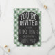 Descubra las herramientas de parrilladas y prepárese para acompañar a sus huéspedes con estas invitaciones únicas y asequibles. La primavera y el verano son perfectos para lanzar un bash en el patio trasero para celebrar su compromiso. Los detalles de la pizarra le dan un toque divertido a estas encantadoras invitaciones de gingham verde. Vea toda nuestra colección de I Do BBQ en nuestra tienda, incluyendo diferentes versiones de esta invitación para que se ajuste a cualquier estilo y colores de la pareja. ¿Necesitas algo específico? Envíenos un mensaje para un diseño personalizado.