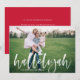 Hallelujah Pincel Leyenda Navidades overlay Foto Tarjeta plana | Enviar saludos de Navidad a la familia y amigos con esta tarjeta plana de vacaciones. Presenta un overlay con letras de pincel con fondo festivo. Puedes personalizar esta tarjeta de festividad religiosa más adelante cambiando la imagen trasera.