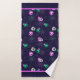 Calaveras coloridas de neón rosa y esmeralda brillantes, estrellas, flores oscuras y telaraña