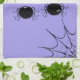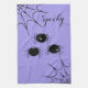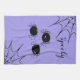 Toalla de cocina mostrada en morado con una huella de arañas bailando de Halloween. Personalizar este artículo o compra tal cual.