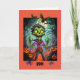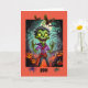 Un zombi verde espeluznante en las cadenas rodeado de murciélagos, un gato aterrador O 'Lanterns, y arañas es el diseño de la portada con la palabra "¡OH!" En el interior izquierdo hay una telaraña con arañas sobre un fondo negro. A la derecha de la página interior está el mensaje: "Ten un Halloween aterrador". Disfruta de esta carta aterradora. Piensen en las maneras inteligentes de personalizarlo. Esto también sería un gran diseño de tarjetas para invitaciones a tu próxima fiesta de Halloween.