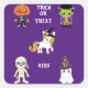 pegatinas "TRICK OR TRAAT" CON MONSTRUOS Y NOMBRE PERSONALIZADO PARA NIÑOS.