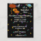 Abundan las invitaciones de Halloween con cielo negro, luna creciente, coloridos Saturno, nubes y estrellas más coloridas. Familia de Calabaza Cuta parada al lado de un árbol con hojas de color de otoño naranja y un gran BOO! Con los ojos encima de las cartas todos los invitan a un Fiesta de la cosecha de Halloween más, pero no demasiado espeluznante. ¡Perfecto para la fiesta de la cosecha de la iglesia de Halloween también!