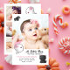 "Un pequeño boo ha hecho su debut" con una bebé de color rosa y blanco con el anuncio de nacimiento de Halloween con adorable fantasma kawaii con un puntito polka rosado, y un lindo gato kawaii y un murciélago haciendo apariciones también. Cuatro fotos, una grande delante y tres pequeñas en la parte posterior. Las estadísticas de nombres y nacimientos van por delante y hay espacio para los detalles de la familia y un mensaje de agradecimiento en la espalda. Diseño compuesto por Holiday Hearts Designs (derechos reservados). Las fotos de los marcadores de posición de plantilla son cortesía de Unsplash.