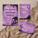 Halloween Wedding RSVP con un árbol espeluznante y cuerdas sobre un fondo morado con un marco negro gris. Diversión por una Halloween con respuestas, Morir para estar ahí, Número de almas que asisten, y Llorar. Tarjetas coincidentes en la colección de mi tienda. Puede cambiar todos los estilos de texto y fuente. Se puede mover o reducir el tamaño del árbol si se interpone. También puede agregar más texto.