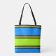 Bolsas de tote HAMbyWhiteGlove -franjas de bloque azul y verde lima reales brillantes y con bandas mixtas más pequeñas en el medio, y una franja negra con nuestro logotipo en los lados blancos (fuente suave y fina). Un gran look moderno y fresco. Estas bolsas femeninas tienen dos estilos y tres tamaños, y son el tote perfecto para mujeres con bolsos de hombro que se utilizan en la escuela, la universidad, el gimnasio, la playa, de la noche a la mañana y de los viajes, ya sea que necesite un pequeño tote o un gran tote, ¿por qué no conseguir una de ellas a un precio asequible y elegante? - Perfecto para todas esas cosas que no cabría en su bolsa habitual. Nuestros diseños de bolsos son todo sobre estilo de vida, estilo, declaración, actitud y "ánimo". ¿Cuál escogerás? Si este diseño no es para ti, HAMbyWG ha creado cientos de otros diseños y patrones para traerte bolsos de tote más atractivos, de moda, populares y de moda, solamente revisa nuestra "colección Tote Bag".