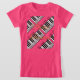 HAMbyWhiteGlove diseñó una camiseta con un gráfico negro de teclas y notas de piano, con la palabra "Piano para siempre" al otro lado del frente. Este diseño se puede transferir a cualquiera de nuestras otras camisetas. Hay muchos estilos y colores, por lo que hay que tener cuidado con la selección. Elija personalizar para revisar sus muchas, muchas opciones. Mostrado aquí con una camiseta rosa.