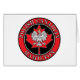Muestra tu orgullo polaco en tu ciudad natal canadiense o en tu ciudad natal de ancestros. Este hermoso diseño redondo presenta una hoja de arce roja de la bandera de Canadá con un overlay de águila blanca polaca y las palabras canadiense polaco y Hamilton en un anillo rojo.