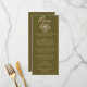 A colorful retro funky modern grasslands green and sweat cream floral wedding dinner menu. Which features chic template design of boho vintage green background on the front and back. With cream whimsical typography and hand drawn floral bouquet. Perfect and matching with the whole suite.
