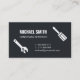 Una tarjeta de visita con siluetas iconos de útiles herramientas de mano que incluyen destornillador, spanner y cortador de alambre. Clásica paleta de colores blanco y negro. Personalice la información de su empresa en las plantillas de texto proporcionadas.