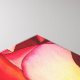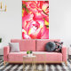 con el diseño original de arte de la pintura acuarela de Sacha Grossel de rosa rosa brillante con resaltes amarillos y follaje verde. Esta flor de estilo macro, muy cercana, muestra la calidad abstracta del rosa y los colores fuertes atraen a los amantes de la flora y la botánica por todas partes.