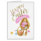 El diseño de esta tarjeta de felicitación incluye un conejo adorable y orejudo que lleva una canasta de huevos de Pascua y desea a todos un "Happy Easter Everybunny". Alegres pasteles en tonos rosa, azul y amarillo y adornos florales añaden este toque final a este pintoresco gráfico de Pascua. Busque ID640 para ver productos adicionales con este diseño.