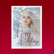Esta glamorosa tarjeta de Navidades magnéticos de moda de Hollywood es perfecta para un modelo o actriz que es la estrella del espectáculo. Felices Fiestas escritas con garrapatas manuscritas de celebridades para una famosa imagen. Elegante guión rojo sobre tu foto vertical favorita.