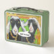 A happy lunch starts with a friendly lunchbox. For kids or grown ups, with original art by Carol Worthington-Levy, who has won awards for her depictions of goats. You can choose different colors for the box: we show green here but it would look great on a black or even a red lunch box, at no extra charge.