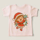 Joyful Santa girl dancing with colorful Christmas lights and snowflakes. A bright and happy design for festive collections.
