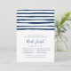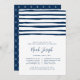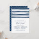 Las elegantes invitaciones a la primera comunión sagrada de la costa incluyen un borde superior de rayas dibujadas a mano en azul cobalto náutico. Personalice con sus primeros detalles de la comunión debajo en una mezcla de moda de tipos de letra en bloque, seriif y manuscritos. Incluye espacio para la ceremonia religiosa y el fiesta o celebración a seguir. Las invitaciones se revertirán a un patrón de pequeños anclajes blancos en azul marino.