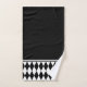 Patrón arlequín clásico compuesto de formas de diamante alargadas en blanco y negro. Este diseño caprichoso simboliza diversión, malicia, entretenimiento y más. Estos diamantes contrastantes crean un patrón encantador en este conjunto de toallas de baño personalizado. Se puede ajustar el tamaño del patrón a cualquier tamaño que se prefiera en cada toalla y añadir un color de fondo para que estas toallas de baño de estilo moderno sean únicas.