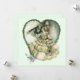 Ilustración vintage de amor y romance de Harrison Fisher, 1908. Una pareja victoriana vestida con esmoquin y vestido de novia besándose en Nochevieja al dar las doce dentro de un corazón hecho de acebo de Navidad. Los felices recién casados se besan. Gran imagen para usar en una boda de diciembre.