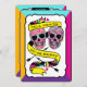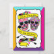 Invitación a una boda divertida y divertida con dos cráneos con estampados brillantes. Perfecto para la pareja de animales salvajes.
